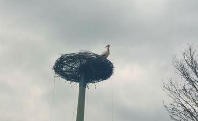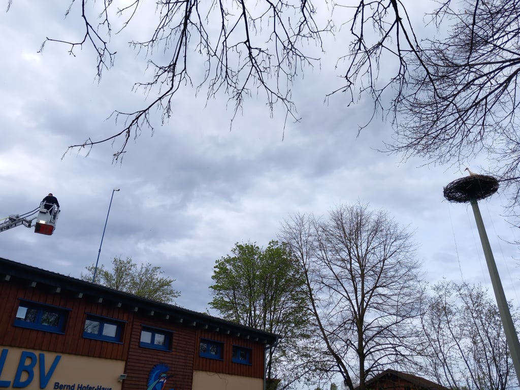 Bereits im letzten Jahr hatte erstmals ein Storchenpaar vor dem LBV-Gebäude im Kleinostheimer Sport- und Freizeitgelände erfolgreich zwei Jungvögel großgezogen. Der Mast mit der Nisthilfe wurde