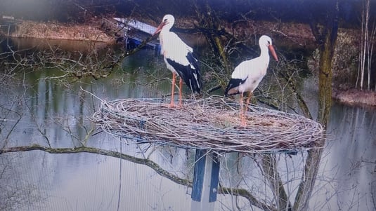 damals am 22.03.2023 mit Unterstützung des Kreisbauhofes und des Bayernwerkes aufgestellt. Noch am gleichen Tag nahmen zwei Weißstörche das Nistplatzangebot an!