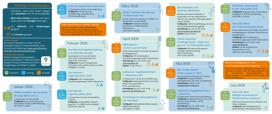 Stöbern Sie in der großen LBV-Termindatenbank und suchen Sie unsere Naturschutz-Termine auch nach Regionen oder Themen. Sie können sich per Mail oder SMS an interessante Termine erinnern lassen.